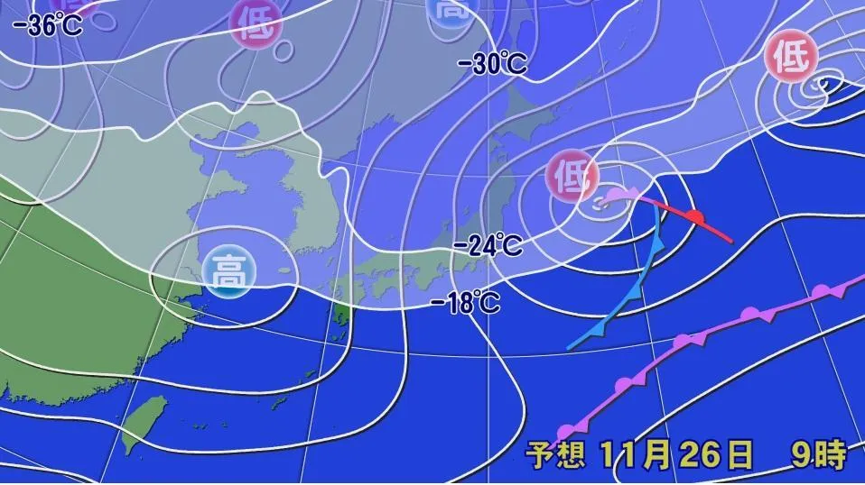 Do đó, từ ngày 25 đến 26, nhiệt độ ở độ cao khoảng 5500 mét trên không, vốn là tiêu chuẩn đo khí lạnh, được dự báo sẽ giảm xuống dưới âm 27 độ C ở Bắc Nhật Bản và Đông Nhật Bản, và dưới âm 24 độ C ở Tây Nhật Bản, cho thấy một đợt không khí lạnh mạnh bất thường trong thời điểm này.