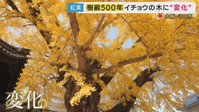 Những thay đổi đã diễn ra với cây bạch quả 500 năm tuổi tại một ngôi chùa ở thành phố Moriguchi, tỉnh Osaka.