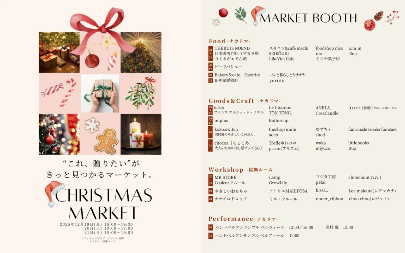 Phiên chợ "フランスマルシェ・ド・ノエル (Marché de Noël Pháp)" sẽ tiếp tục góp mặt tại sự kiện này, vốn được tổ chức tại tiền sảnh của Ao-re Nagaoka từ ngày 16 (Thứ Ba) đến 18 (Thứ Năm) tháng 12 năm 2025.