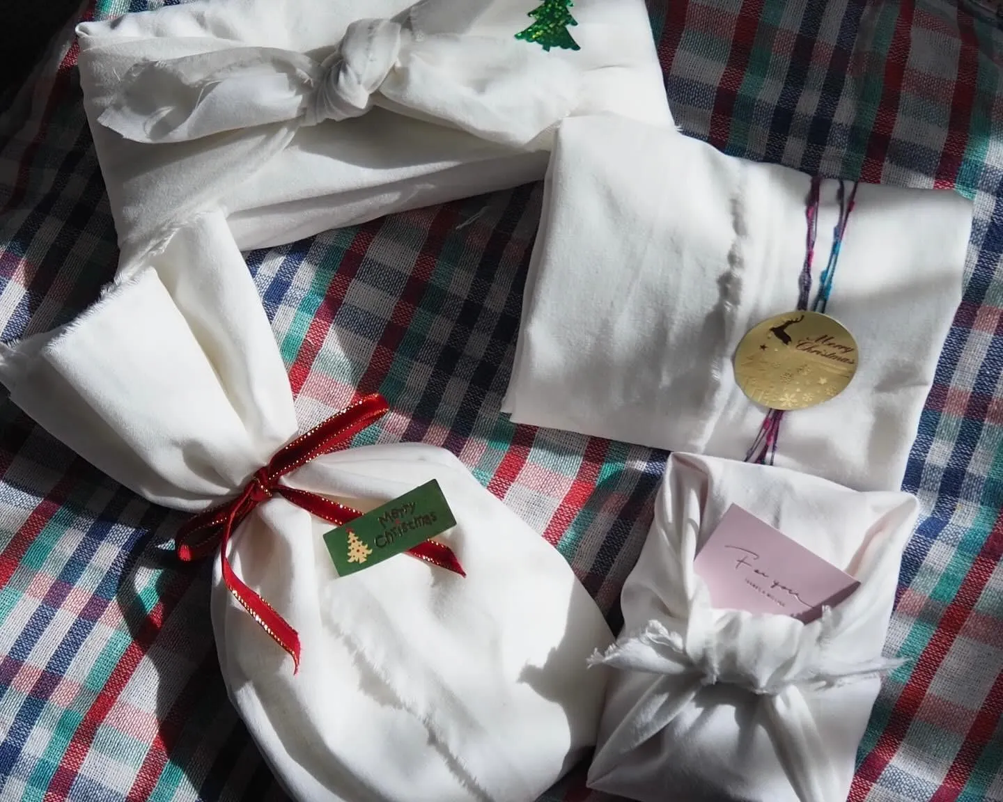 Để gói quà, người ta sẽ sử dụng vải từ dự án "TAKE FRe:E (Take Furii)" chuyên tái sử dụng các mảnh vải vụn lẽ ra bị bỏ đi. Bạn có muốn trải nghiệm "gói quà tuần hoàn" thân thiện với môi trường, có thể tái sử dụng nhiều lần sau khi nhận quà không?