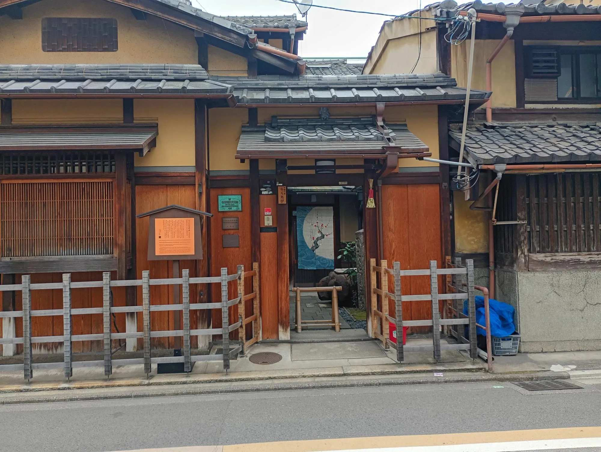 Khi dạo bước trên phố, tôi đã tình cờ gặp "Rakutabi Kyomachiya", một công trình kiến trúc được công nhận là Tài sản Văn hóa Hữu hình Đăng ký Quốc gia và Công trình Kiến trúc Quan trọng về Cảnh quan do thành phố chỉ định. Đây là một ngôi nhà phố Kyomachiya hiện đại được xây dựng vào năm Showa thứ 7 (1932), với hơn 90 năm lịch sử. Với cửa sổ lưới, lối vào bằng đất (doma) và khu vườn phía trước tuyệt đẹp, đây là một tòa nhà mà vẻ đẹp truyền thống của Kyoto sống động khắp nơi, khiến tôi không khỏi dừng chân trước vẻ ngoài của lối vào. Ngôi nhà phố này, đóng vai trò là cơ sở của "Rakutabi - Du lịch ở Rakuyo" và là nơi truyền tải lịch sử và văn hóa Kyoto, càng làm tăng thêm nét quyến rũ của phố Takoyakushi.