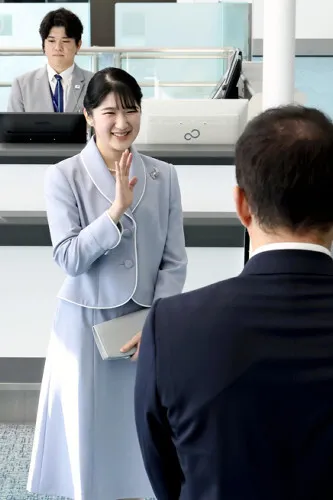 Tại cổng lên máy bay ở Sân bay Haneda, Công chúa chào các quan chức Cơ quan Nội chính Hoàng gia và những người đưa tiễn, nói rằng: "Bản thân tôi sẽ cố gắng hết sức", "Tôi rất hồi hộp. Đã lâu rồi tôi mới đi chuyến bay quốc tế...".