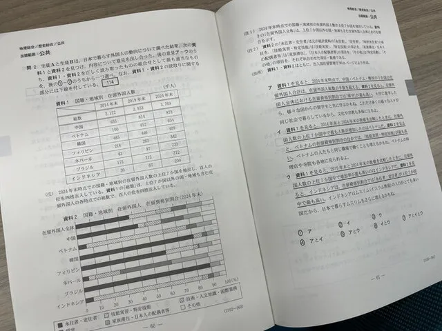 Trong môn "Công dân" của kỳ thi chung tuyển sinh đại học năm 2026 được tổ chức vào ngày 17 tháng 1, đã có câu hỏi lấy chủ đề về "Người nước ngoài cư trú". Đề thi môn "Công dân" của kỳ thi chung Trong một câu hỏi lớn (phần) có chủ đề về toàn cầu hóa, v.v., đề thi đã trình bày một bảng biểu thể hiện sự thay đổi về số lượng người đến từ các quốc gia hàng đầu như Trung Quốc, Việt Nam, Hàn Quốc dưới dạng "Số lượng người nước ngoài cư trú theo quốc tịch/khu vực", và một biểu đồ chi tiết theo từng quốc gia về "Tỷ lệ theo tư cách lưu trú" như người thường trú/định cư, thực tập sinh kỹ năng/kỹ năng đặc định, du học. Sau đó, thí sinh được yêu cầu chọn cách giải thích đúng.