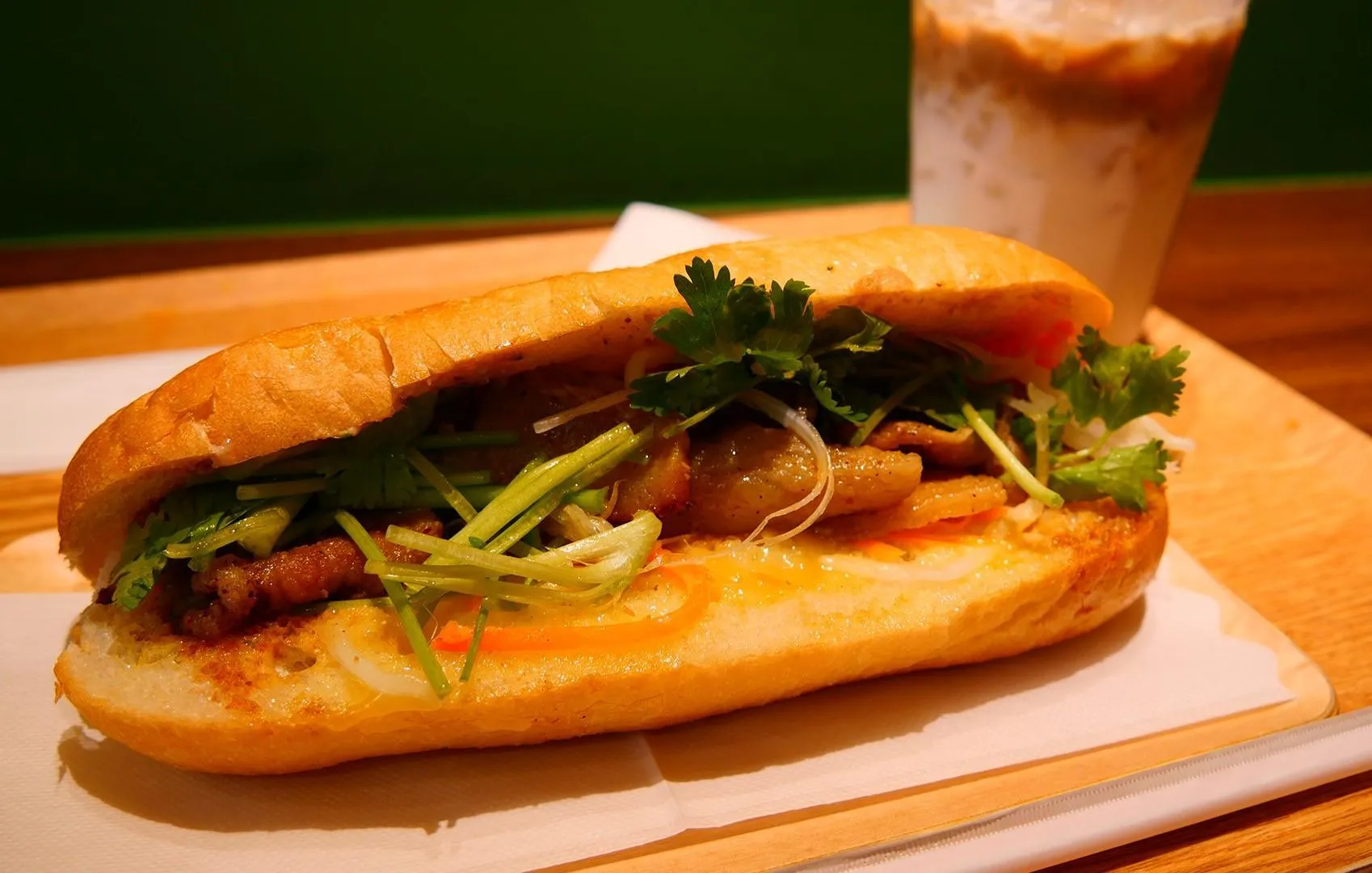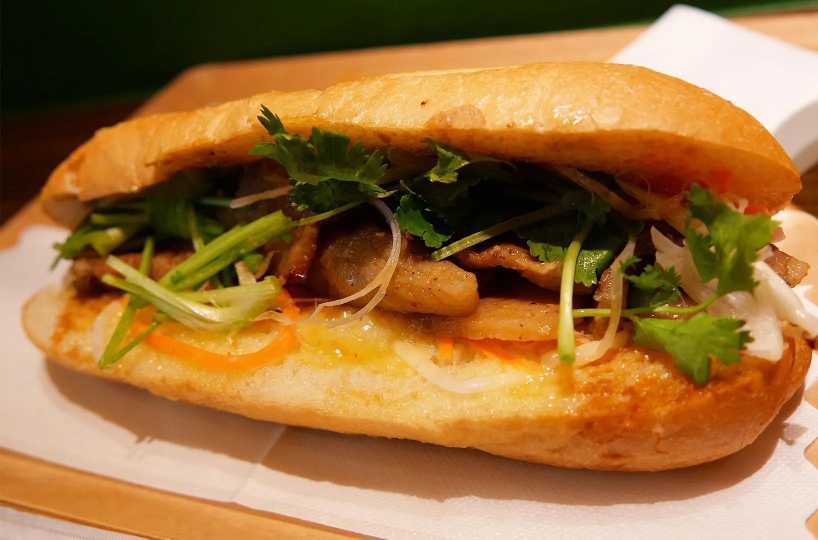 "Bánh mì thịt heo nướng" có độ no đáng ngạc nhiên hơn vẻ ngoài, rất đầy đặn. Màu sắc rực rỡ và hương vị đậm chất dân tộc kích thích vị giác.