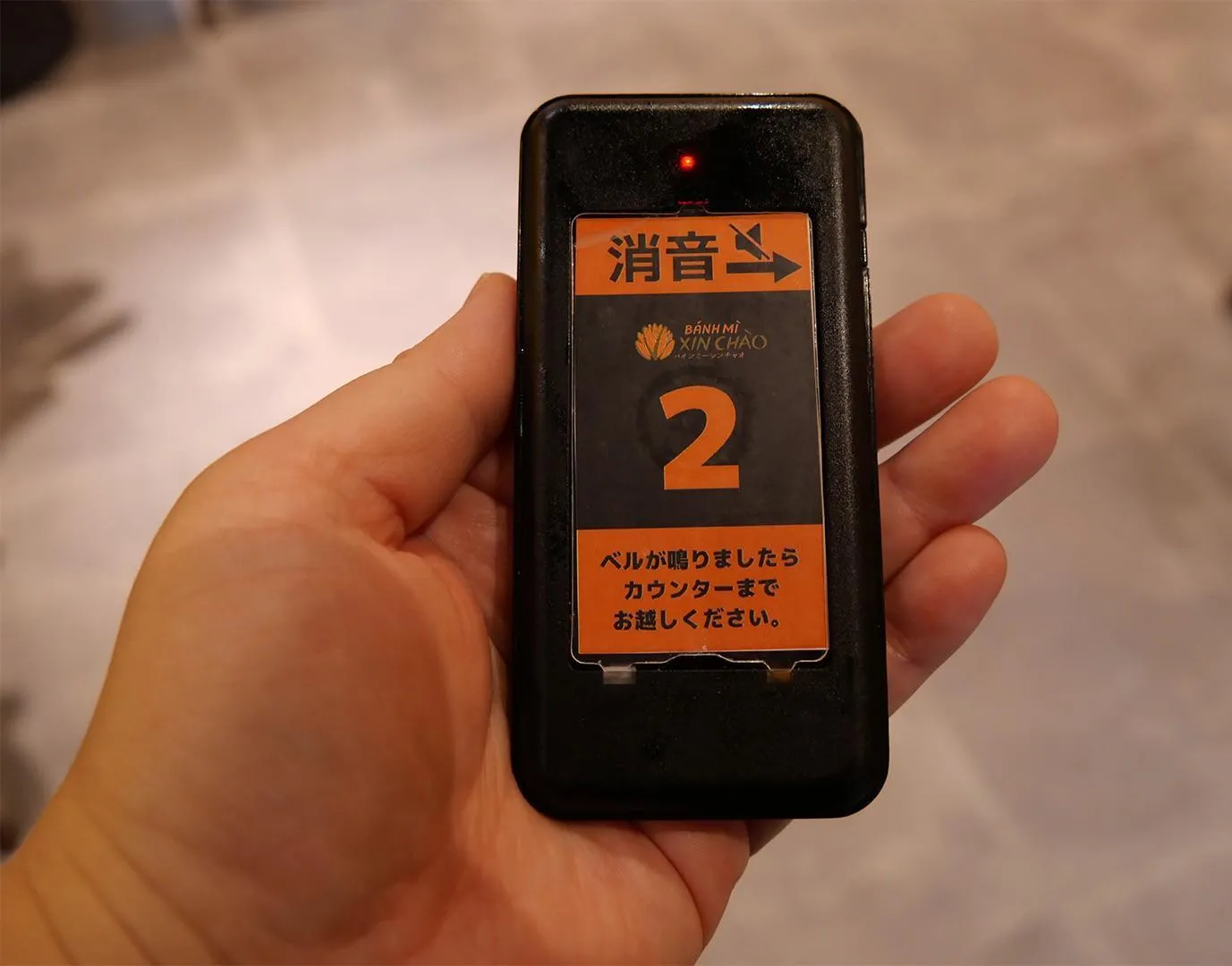 Sau khi đặt món, việc có thể chờ ở bàn trước khi nhận đồ ăn cũng rất hữu ích, đặc biệt khi bạn mang nhiều đồ sau khi mua sắm. Khi món ăn đã sẵn sàng, chuông sẽ reo và bạn có thể đến nhận.