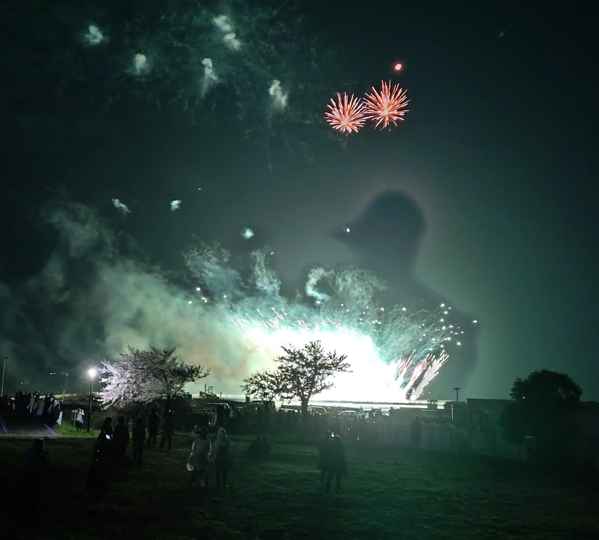 Pháo hoa được bắn trong sự kiện “HEART花火2026” vào tối ngày 4 tháng 4 tại quê hương Tsuchiura của Haruma.