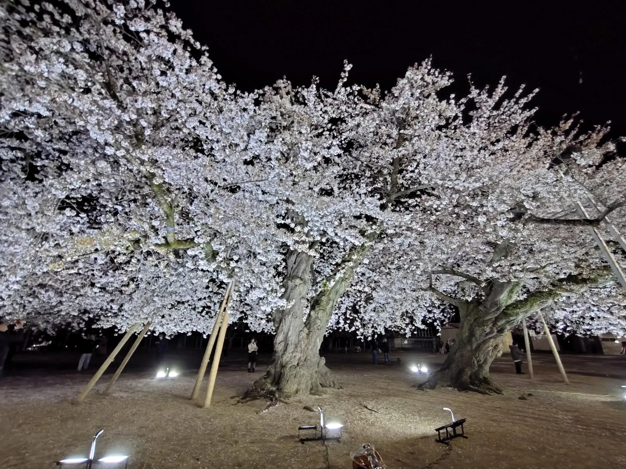 Cây anh đào tại trường tiểu học Manabe, trường cũ của Haruma, cũng rất nổi tiếng, và hoa anh đào đêm nay thật tuyệt vời.