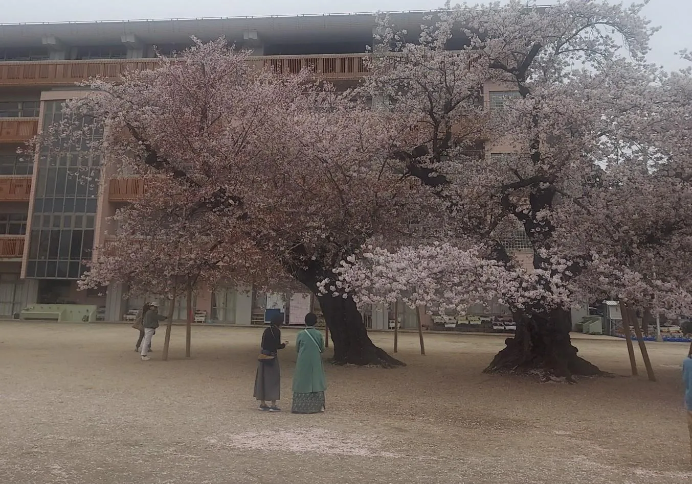 Năm nay, hoa anh đào đã nở rộ và tô điểm cho sân trường một cách lộng lẫy.