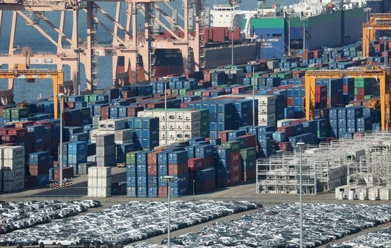 Tại cảng Pyeongtaek ở Poseung-eup, Pyeongtaek-si, Gyeonggi-do, Hàn Quốc, các container xuất khẩu đang được chất đống. [News1]
