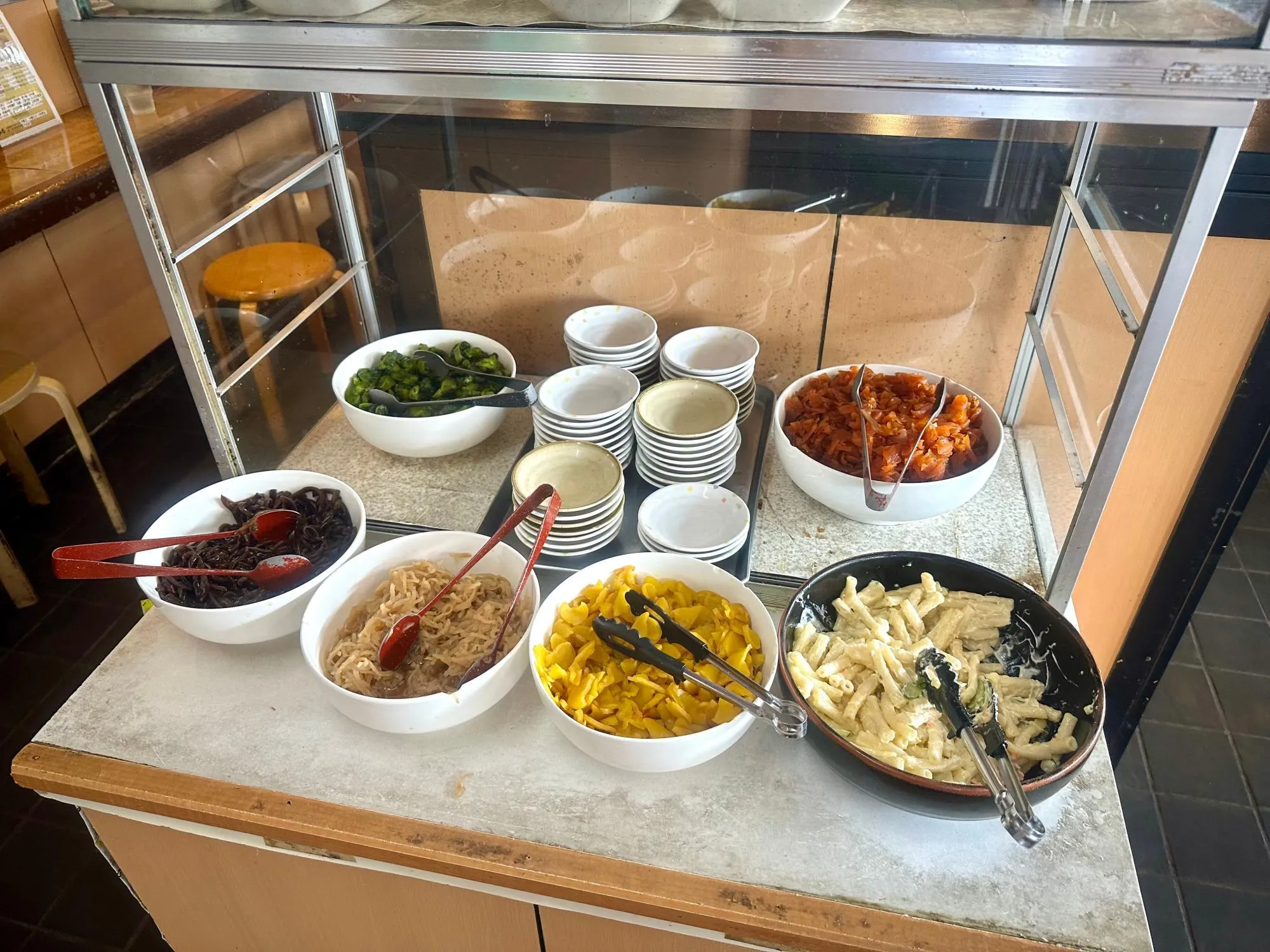 Trước khi udon được mang ra, chúng tôi đã thưởng thức các món ăn kèm miễn phí. Hôm đó có tới 5 loại món ăn kèm, một dịch vụ rất đáng giá trong thời điểm hiện tại.