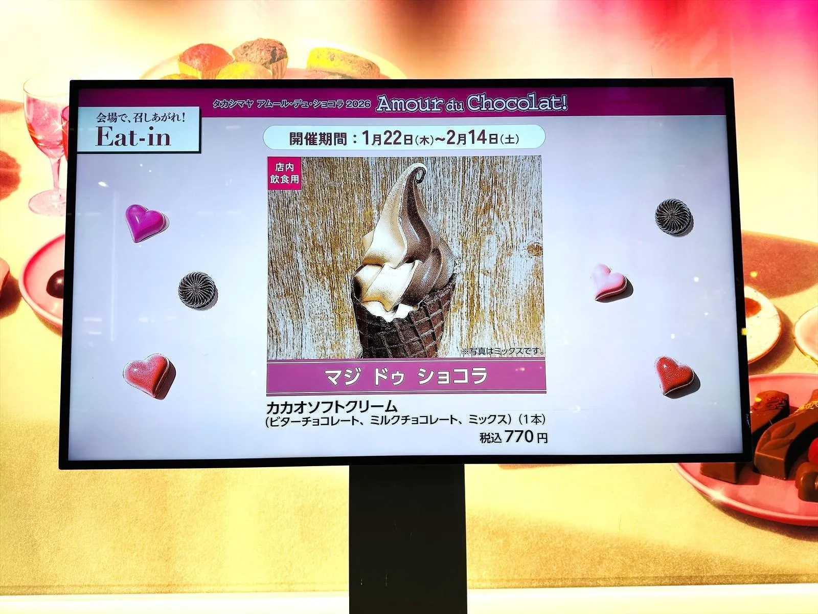 Giữa không khí đó, tại sảnh đặc biệt tầng 8 của Nihonbashi Takashimaya, món kem mềm cacao của "Magie du chocolat" – thương hiệu chuyên về cacao – đã tạo nên ấn tượng mạnh mẽ trong số các món ăn và tráng miệng tại khu ẩm thực.