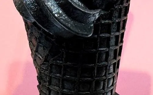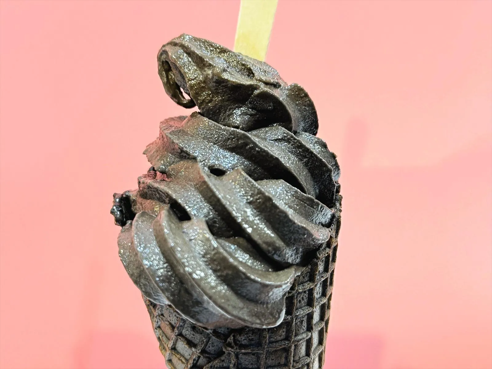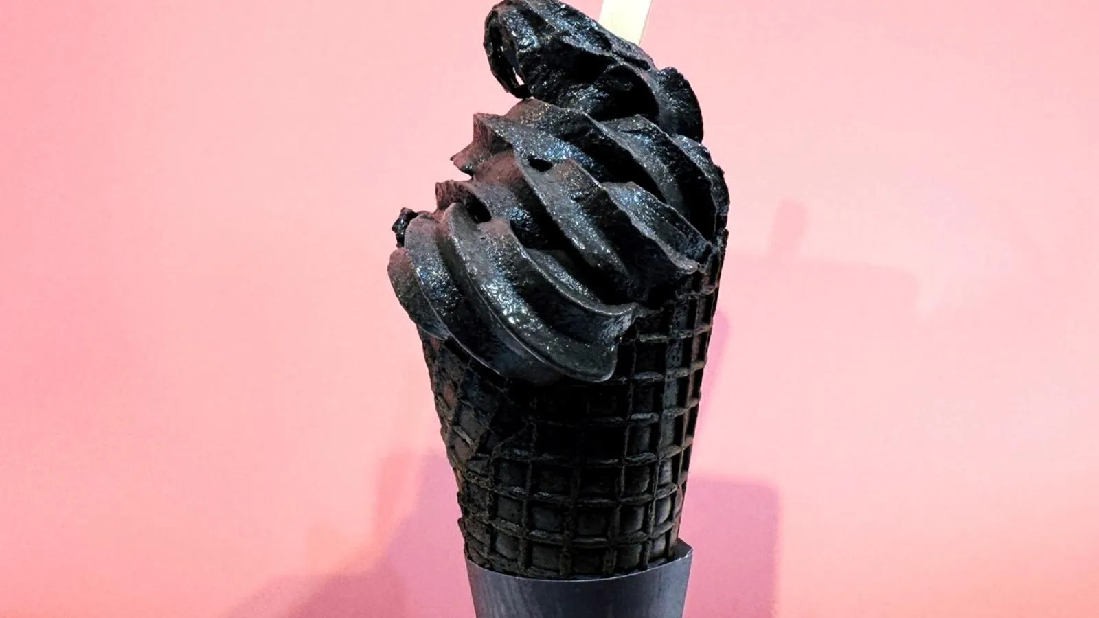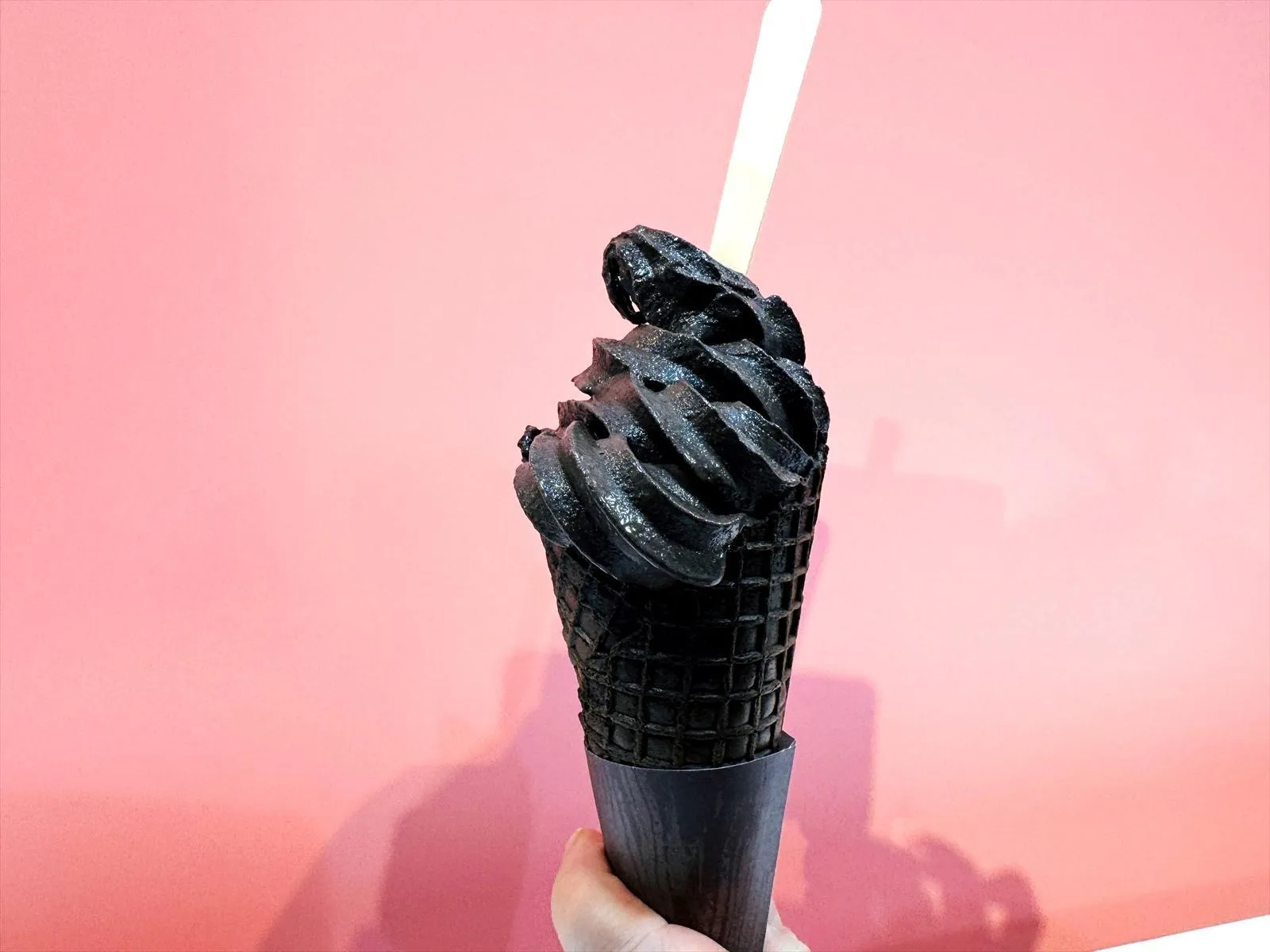 Điều ấn tượng hơn nữa là chiếc ốc quế đen nướng có vị đắng bao bọc lấy kem mềm.