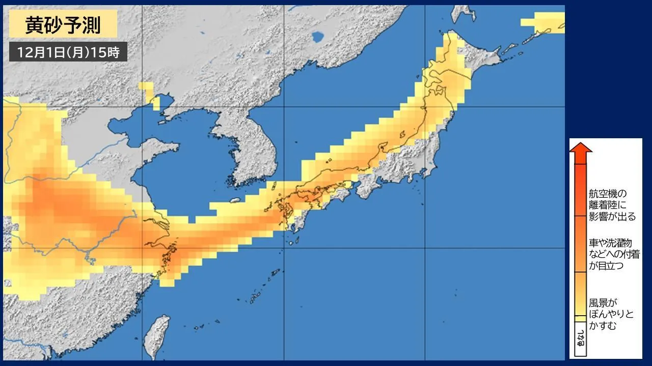 Dự báo bụi vàng vào ngày 1 tháng 12 (dựa trên trang web của Cục Khí tượng Nhật Bản).