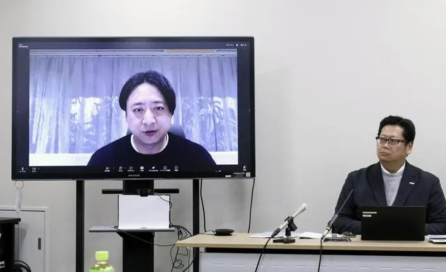 Chủ tịch Kokuyo, Hidekuni Kuroda (trên màn hình), tham gia cuộc họp báo trực tuyến tại Osaka vào chiều ngày 4/12.