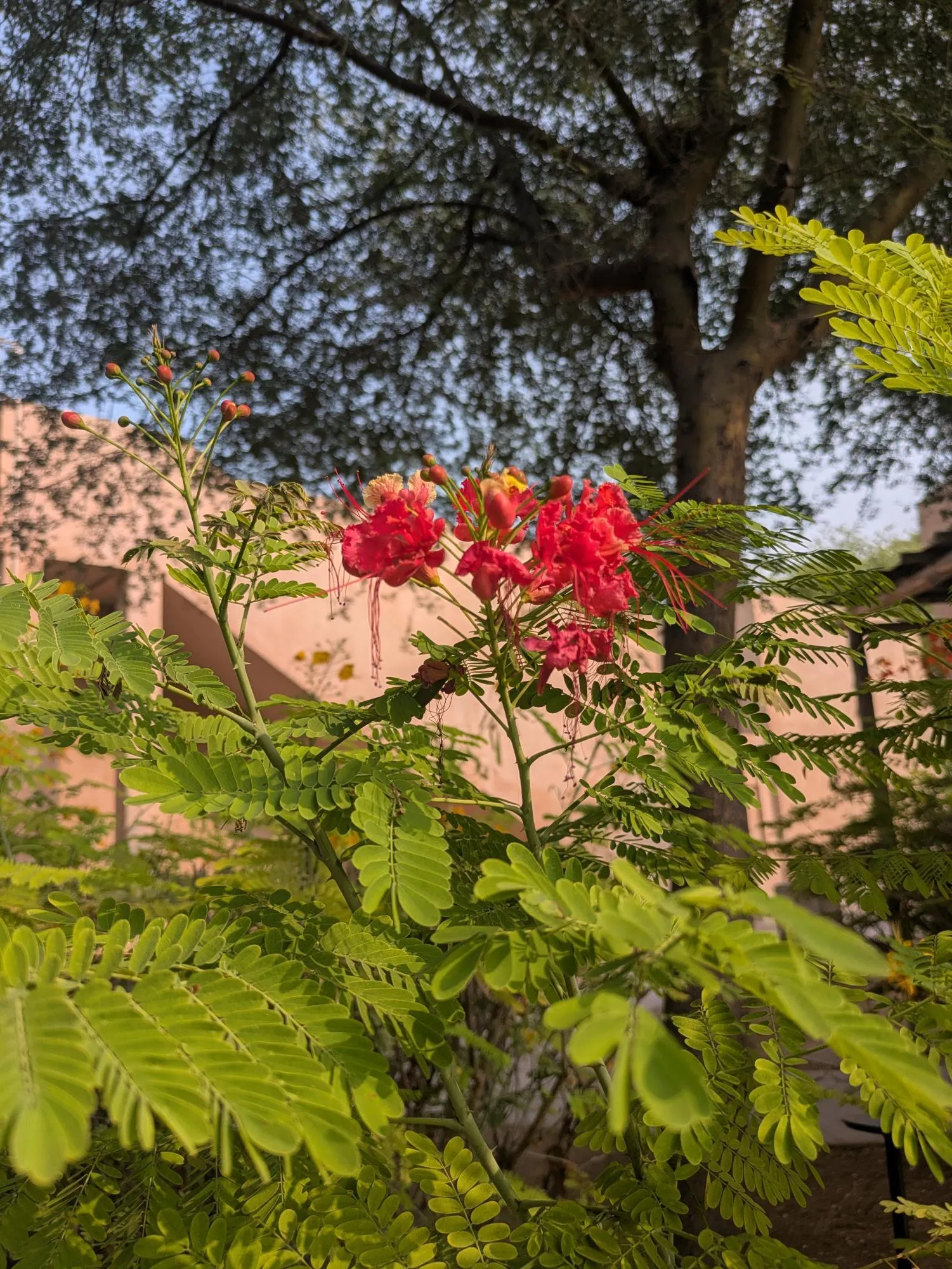 Những bông hoa rực rỡ và cây cối xanh tươi lấp đầy các con đường và khoảng trống giữa các tòa nhà. Việc di chuyển đến các phòng tập hay nhà hàng cũng mang lại cảm giác hạnh phúc như đang dạo chơi trong vườn. Đi vòng ra bãi biển, tôi thấy những cây đước nhỏ đang được ươm.