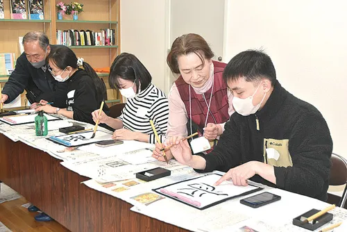 Với mong muốn giới thiệu văn hóa truyền thống Nhật Bản tới người nước ngoài, Lớp học tiếng Nhật Fukuchiyama (Đại diện: Yoshitaka Ashida) đã tổ chức buổi trải nghiệm thư pháp vào ngày 22 tại Trung tâm Giao lưu Nhân quyền Hori Kaikan, Horikuchi, Thành phố Fukuchiyama, tỉnh Kyoto. Buổi lễ này ban đầu được lên kế hoạch vào tháng 1 nhưng đã bị hoãn do ảnh hưởng của trận bão tuyết lớn. Tổng cộng 9 người đến từ Việt Nam, Wales và Indonesia đã tham gia, họ cầm bút và hướng về tờ giấy bán trong tư thế nghiêm túc.