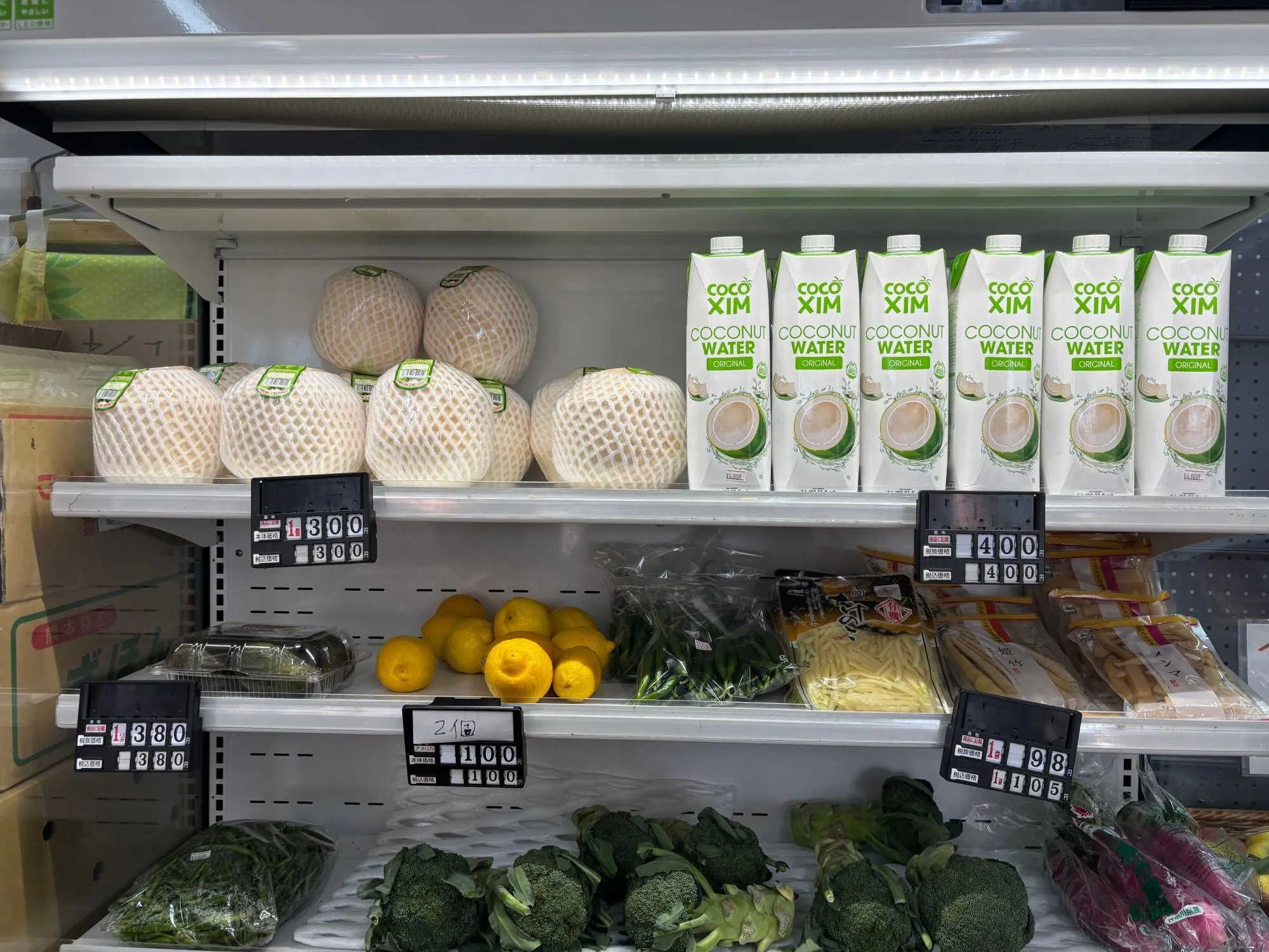 Nhìn vào tủ lạnh ở phía sau cửa hàng, tôi càng ngạc nhiên hơn! Họ còn bán cả dừa. Giá cũng rất phải chăng, chỉ 300 yên một quả. Điều này thật thú vị.