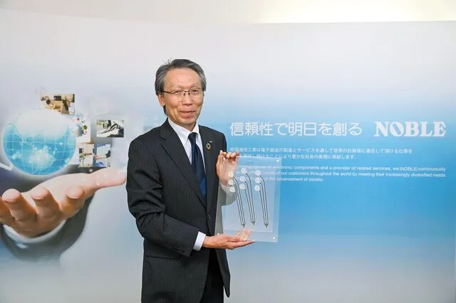-- Xin vui lòng cho biết về lịch sử thành lập công ty và các sản phẩm mà quý công ty cung cấp với tư cách là một nhà sản xuất linh kiện điện tử tổng hợp. Hanyu: Chúng tôi bắt đầu sản xuất linh kiện điện tử cho thiết bị quân sự khi thành lập vào tháng 8 năm 1944, nhưng ngay sau đó Chiến tranh thế giới thứ hai đã kết thúc. Sau chiến tranh, việc sản xuất biến trở được lắp đặt trên các thiết bị điện tử như radio và TV trắng đen đã trở thành nền tảng của công ty chúng tôi. Biến trở được sử dụng để điều chỉnh âm lượng và kiểm soát dòng điện trong mạch. Với sự ra đời của TV màu trong mỗi gia đình nhân dịp Olympic Tokyo (1964), linh kiện điện tử của công ty chúng tôi cũng phát triển nhờ các ứng dụng như điều chỉnh màu sắc và bộ dò tần số.