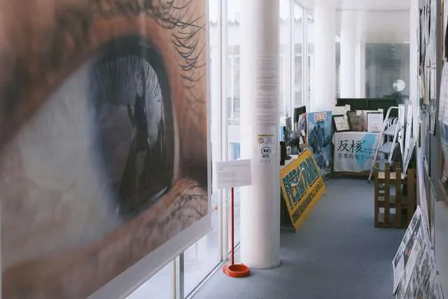 Chủ nhân của đôi mắt này là một người Việt Nam đã đến Nhật Bản với tư cách là thuyền nhân. Trong đôi mắt được phóng to của cô ấy, bức tượng Chúa Kitô của Nhà thờ Công giáo Takatori được phản chiếu. Kể từ những năm 1980, nhiều người Việt Nam lánh nạn đã đến nhà thờ này. Hơn nữa, bản thân Trung tâm Cộng đồng Takatori cũng đang thực hiện các hoạt động hỗ trợ cộng đồng người Việt Nam tại Nhật Bản.