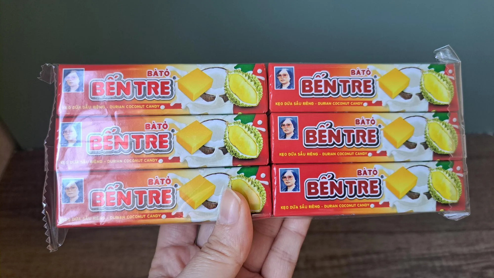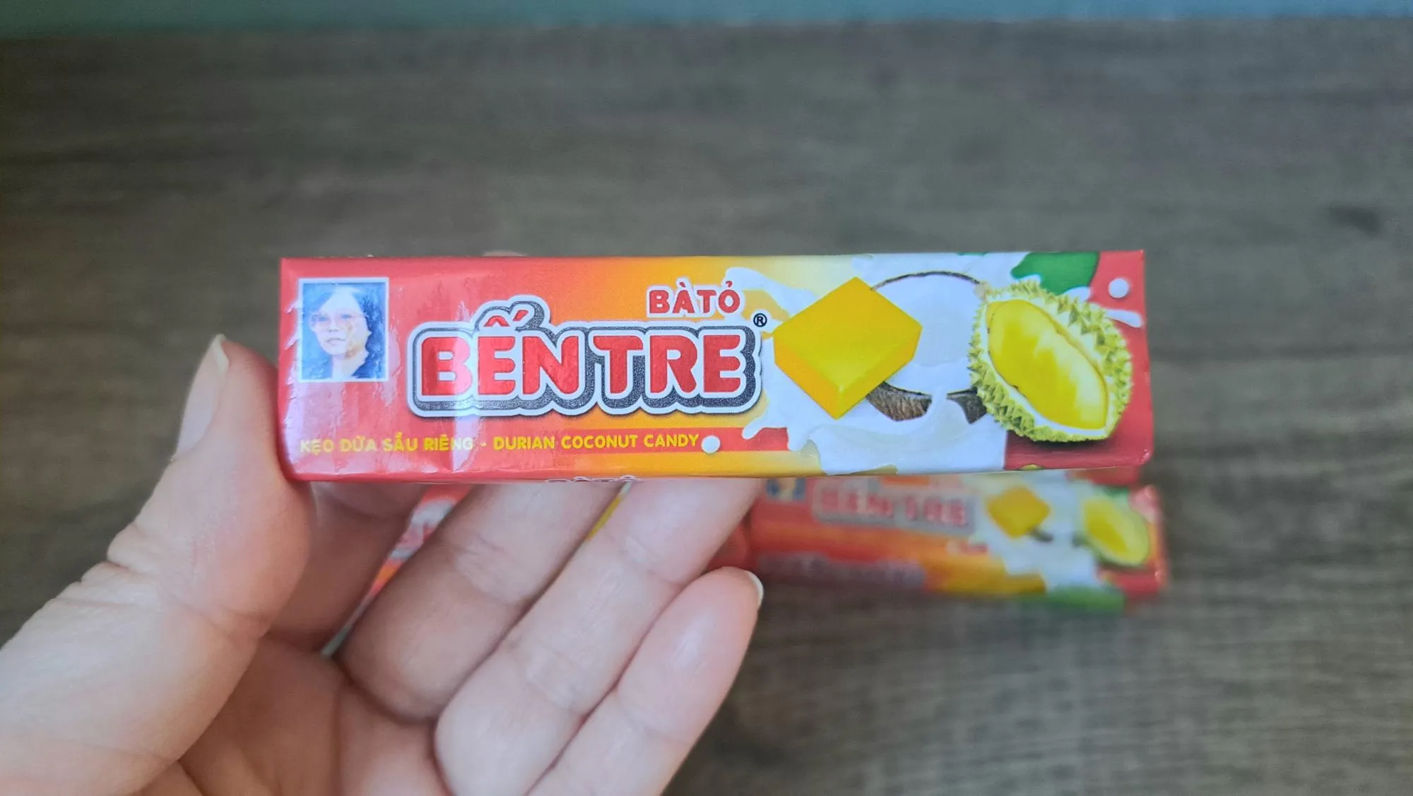 Đây là sản phẩm có xuất xứ từ Việt Nam. Mỗi viên kẹo có 24 kcal. Trên bao bì, bên cạnh hình vẽ trái dừa là hình ảnh quả sầu riêng, tạo nên một thiết kế mang đậm chất nhiệt đới.