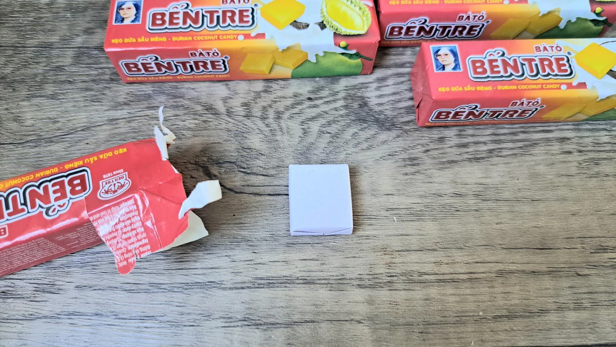 Ban đầu, kẹo khá cứng, nhưng khi nhai liên tục, nó trở nên dẻo hơn và có cảm giác khá dính răng. Vì dễ dính răng, những ai không thích có thể ngậm thay vì nhai. Nhìn chung, đầu tiên là hương vị ngọt ngào và thơm nồng của dừa, sau đó là một hương vị độc đáo lan tỏa khiến bạn tự hỏi "Đây có phải là sầu riêng?". Tôi cảm thấy đây là một hương vị đặc trưng của sầu riêng, rất dễ gây chia rẽ sở thích. Khi nhờ người bạn vốn mê sầu riêng ăn thử, cô ấy nói rằng "Trong hương vị dừa, tôi cảm nhận rõ ràng vị sầu riêng". Cô ấy cũng nhận xét rằng đối với một loại kẹo, nó đã tái tạo được hương vị sầu riêng khá tốt.