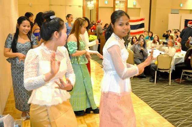 Người Campuchia biểu diễn điệu múa truyền thống trong trang phục dạ hội = ngày 14 tháng 12 năm 2025, thành phố Rikuzentakata, tỉnh Iwate, ảnh của Makoto Higashino