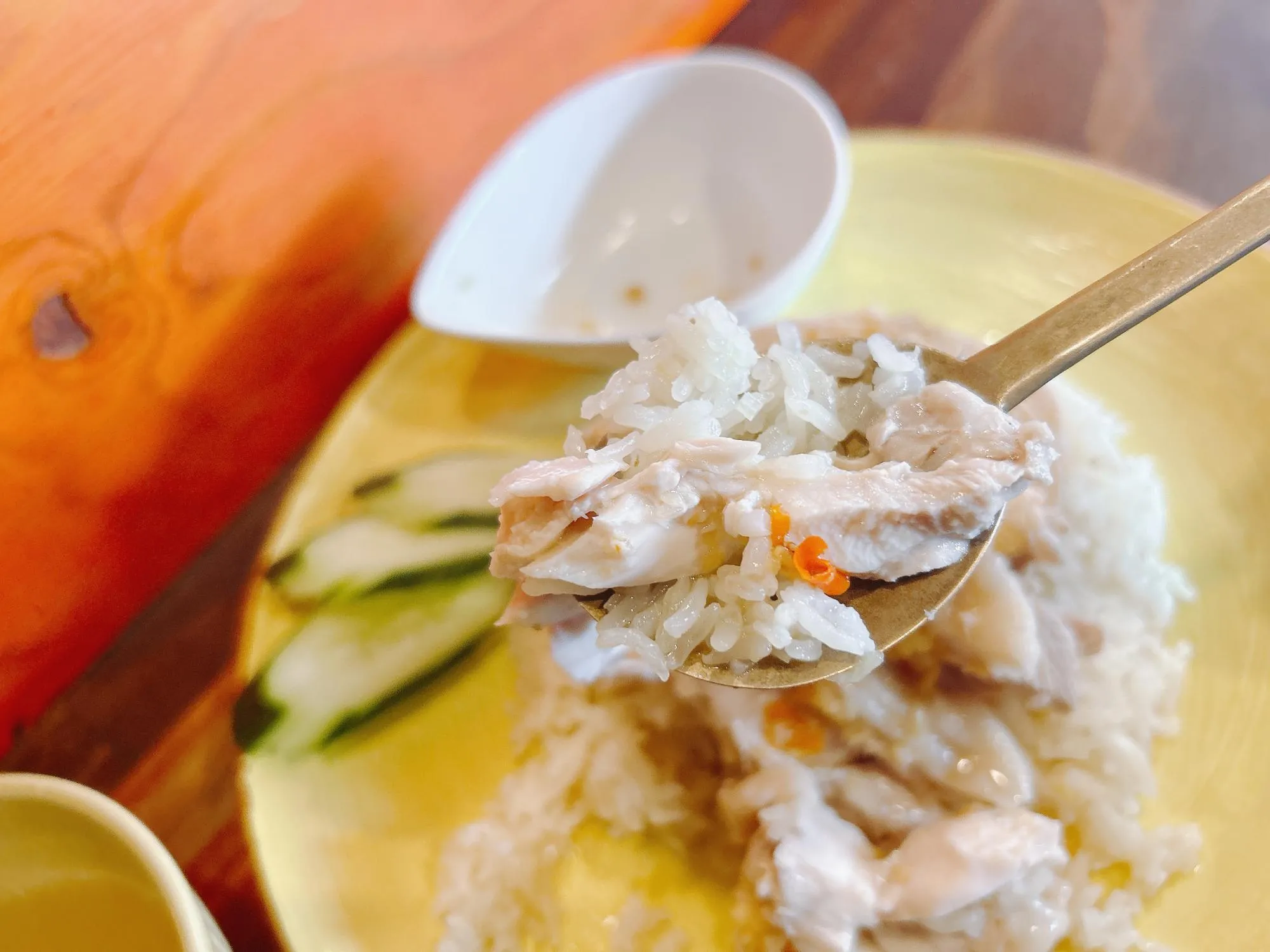 Cơm nhài thấm đẫm vị umami của gà, với kết cấu rời tơi dễ chịu, khi trộn cùng sốt thì hương vị càng nhân đôi. Món ăn có vị thanh thoát nhưng sâu sắc, khiến bạn không thể ngừng dùng muỗng.