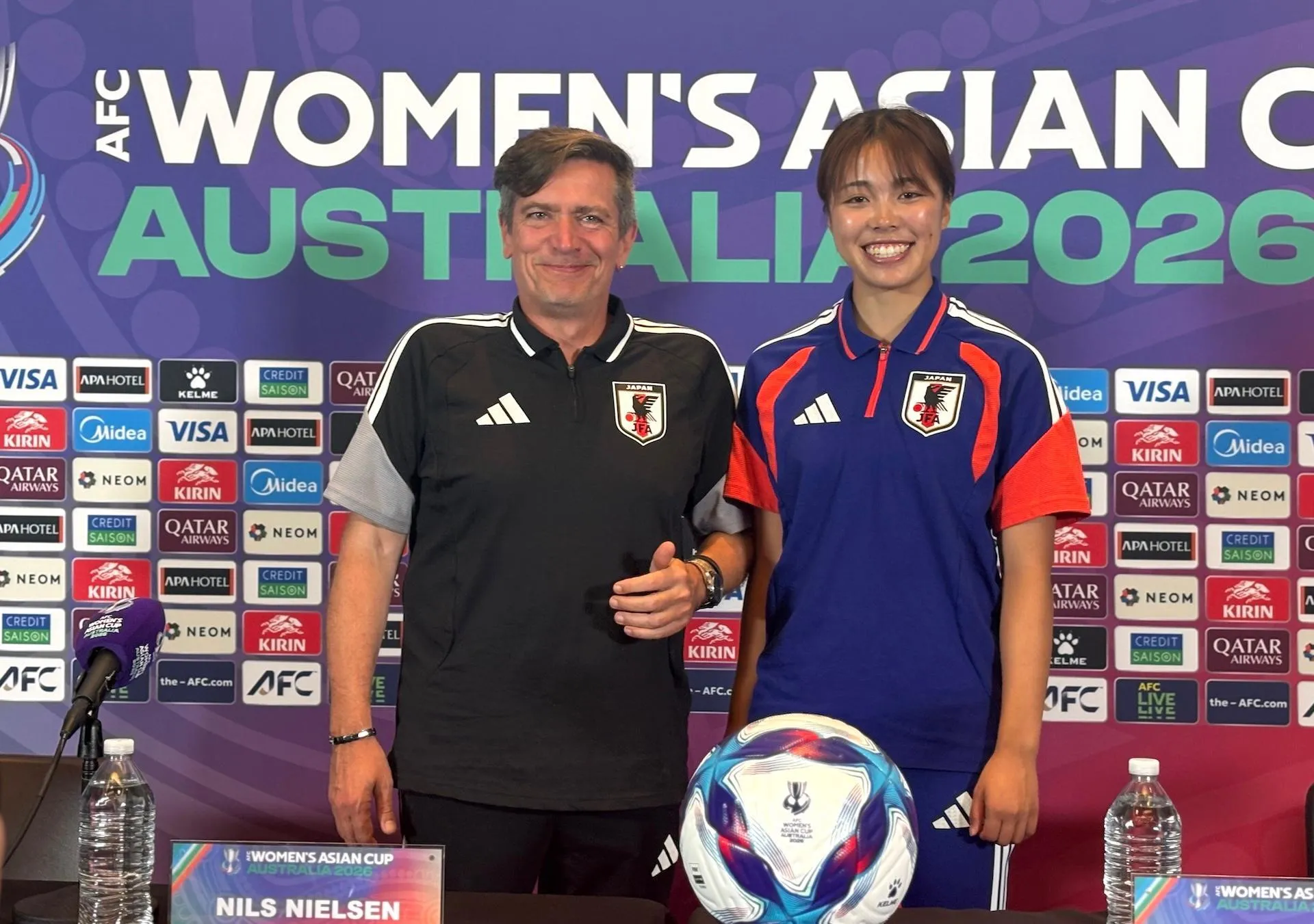 Huấn luyện viên Nielsen và Tanikawa Momoko tại buổi họp báo (Ảnh: Tác giả)
