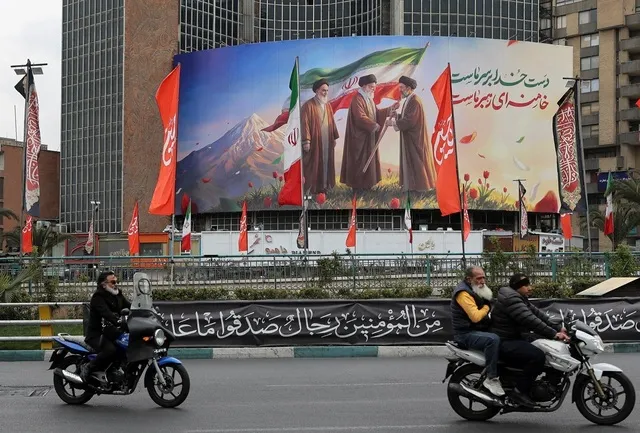 Biểu ngữ thông báo việc lựa chọn Tiemejt Khamenei, con trai của Lãnh tụ Tối cao quá cố Ali Khamenei, làm người kế nhiệm. Iran thể hiện lập trường đối đầu với Mỹ (Reuters/Afro)