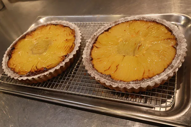 Bánh tart lê sử dụng phô mai kem của Snow Brand Megmilk được phục vụ tại buổi thử món, ngày 8, trung tâm Singapore (Ảnh: NNA).