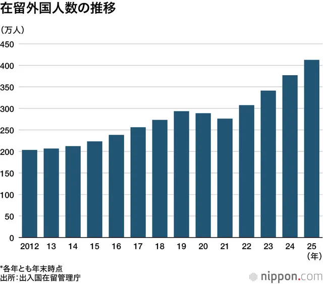 Vào ngày 27, Cơ quan Quản lý Xuất nhập cảnh đã công bố thống kê xuất nhập cảnh năm 2025. Số người nước ngoài cư trú vào cuối năm đó là 4.125.395 người, lập kỷ lục mới và lần đầu tiên vượt qua 4 triệu người. Trong khi số người nước ngoài bị trục xuất khỏi Nhật Bản do vi phạm Luật Xuất nhập cảnh và Cư trú giảm, việc xử lý đơn xin tị nạn, vốn là một vấn đề tồn tại, đã có xu hướng nhanh hơn.