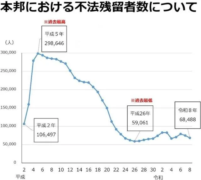 Vào ngày 27, Cơ quan Quản lý Xuất nhập cảnh đã công bố dữ liệu cho thấy số người nước ngoài cư trú bất hợp pháp tại Nhật Bản là 68.488 người tính đến ngày 1 tháng 1 năm 2026. Con số này đã giảm 6.375 người (8,5%) so với một năm trước. Theo quốc tịch/khu vực, Việt Nam đứng đầu với khoảng 11.000 người, tiếp theo là Thái Lan và Hàn Quốc.