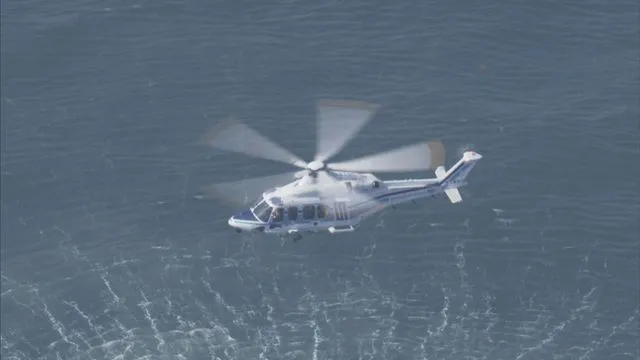 Máy bay trực thăng thực hiện công tác cứu hộ người mất tích = Khoảng 10 giờ sáng ngày 21, trên bầu trời đảo Yushima, thành phố Sakai, tỉnh Fukui