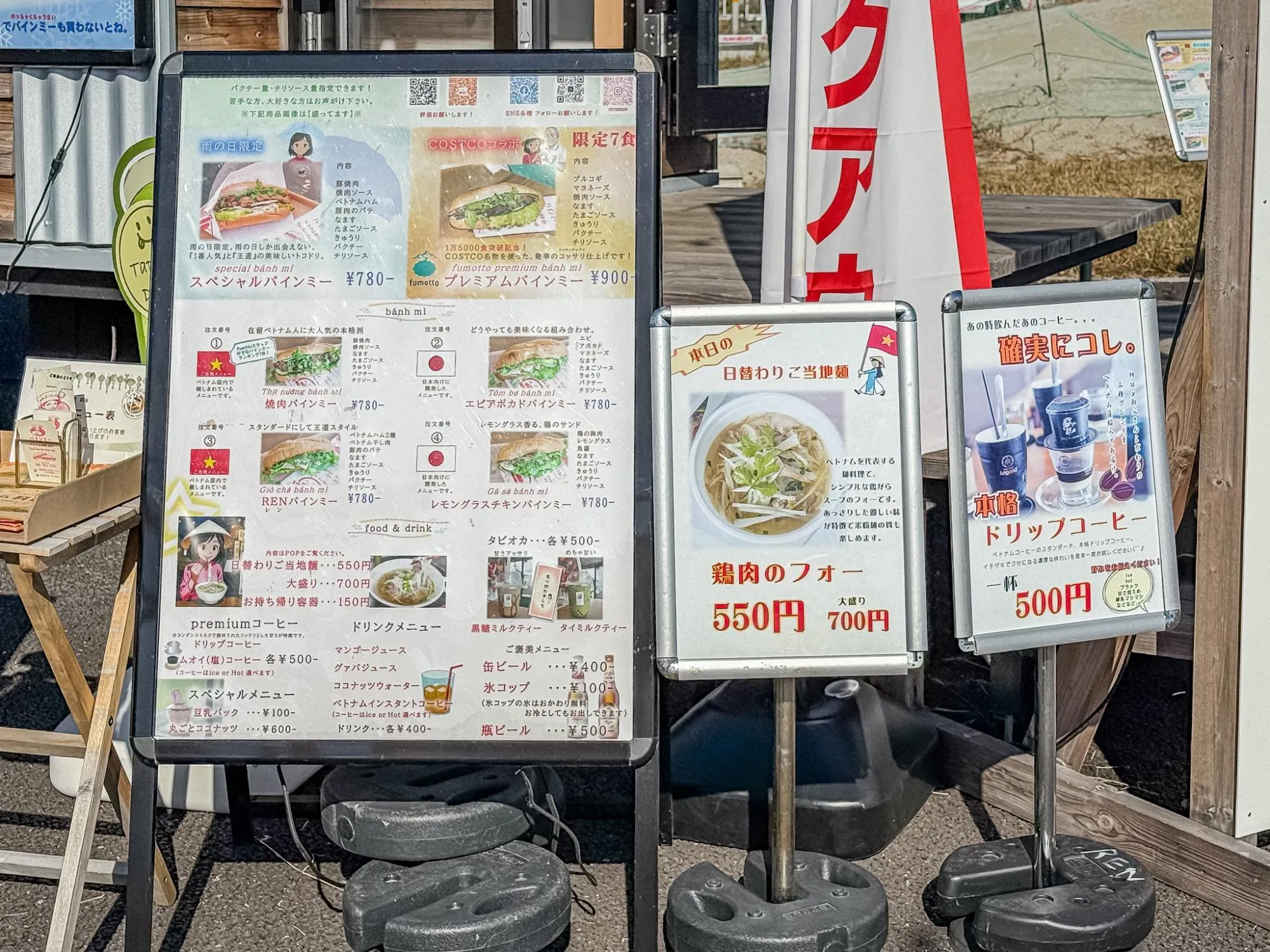 Lần đầu thử món Việt, tôi đã gọi Bánh mì REN (780 yên đã bao gồm thuế) và Phở gà (550 yên đã bao gồm thuế). Có vẻ như có thể điều chỉnh lượng rau mùi và tương ớt theo sở thích, nên những người không thích rau mùi cũng có thể dễ dàng thưởng thức. Mặc dù tôi không thực sự thích nhiều rau mùi, nhưng nhân viên bảo không sao nên tôi đã yêu cầu lượng bình thường.