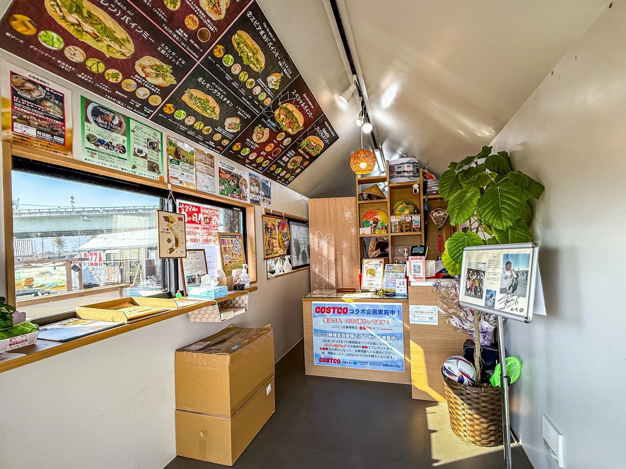 Bên trong xe kéo trông như thế này. Đây là cửa hàng chỉ bán mang đi, nên bạn đặt hàng ở đây và cầm chiếc quạt có số thứ tự để chờ bên ngoài.
