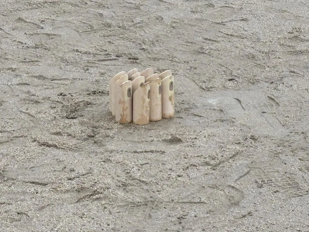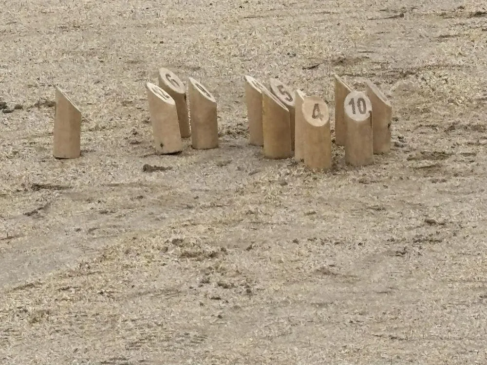 Nhìn ra sân, các đội tham gia đang tập luyện trước khi giải đấu bắt đầu. Tôi đã xem Molkky chơi nhiều lần trước đây, nhưng lần này tôi cảm thấy trình độ chung cao hơn hẳn, có lẽ vì họ tham gia giải đấu.