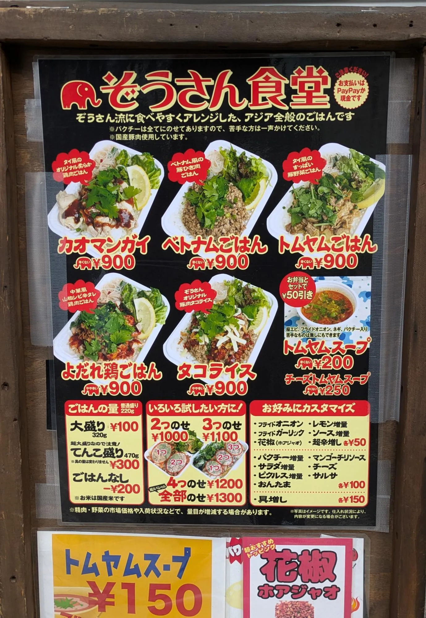 Bạn có thể chọn 5 loại thực đơn trong suất cơm trưa (Khao Man Gai, cơm Việt Nam, cơm Tom Yum, cơm Gà xé phay, cơm Taco). Mặc dù ăn một món là đủ ngon, nhưng việc kết hợp 2 món hoặc 3 món theo ý thích rất được ưa chuộng.