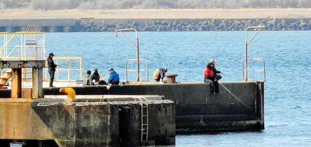 Cảng Fukui, nơi vốn cấm câu cá, vẫn có nhiều người câu cá từ trong và ngoài tỉnh lui tới. (Phóng viên Sakii, tỉnh Fukui)