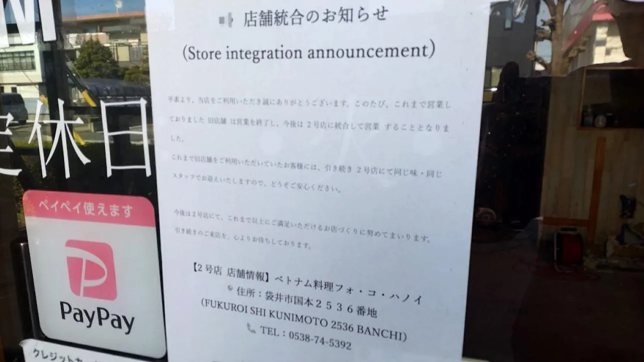 Một thông báo đã được dán ở lối vào của quán. Theo đó, quán đã đóng cửa do "hợp nhất cửa hàng". Sắp tới, quán sẽ hoạt động dưới hình thức hợp nhất với cửa hàng thứ hai.