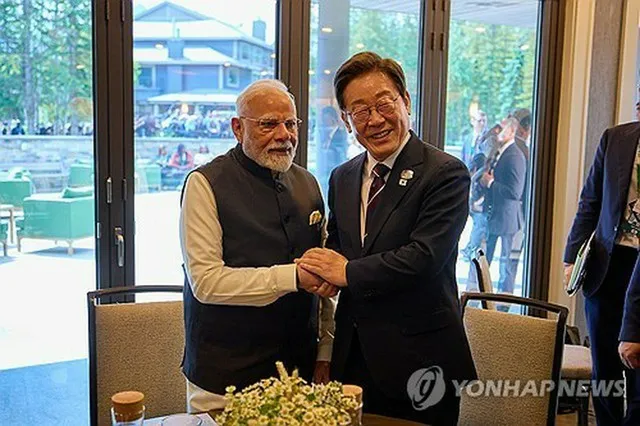 Tổng thống Hàn Quốc Lee Jae-myung (phải) và Thủ tướng Ấn Độ Modi (ảnh tư liệu) – (Yonhap News)