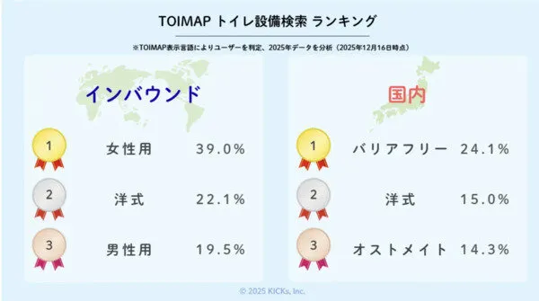 KICKs, công ty vận hành "TOIMAP" – một bản đồ nhà vệ sinh hướng đến giải quyết các vấn đề xã hội – đã công bố kết quả phân tích dữ liệu nhật ký tìm kiếm trên TOIMAP.