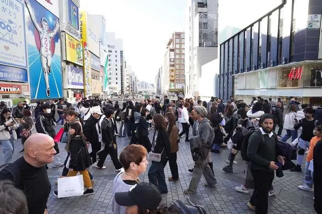Du khách nước ngoài qua lại khu phố sầm uất Minami, Osaka = Chiều 30 tháng 11, quận Chuo, thành phố Osaka (Ảnh: Kakihira Hirofumi)