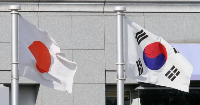 Từ trái sang: Cờ Nhật Bản, Cờ Hàn Quốc *Ảnh minh họa