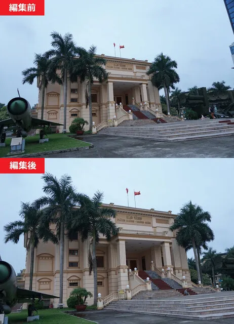 Chúng tôi đã thử cắt ảnh. Các phần thừa xung quanh đã bị loại bỏ, làm nổi bật tòa nhà trung tâm. Bức ảnh đã đẹp hơn so với trước khi chỉnh sửa.